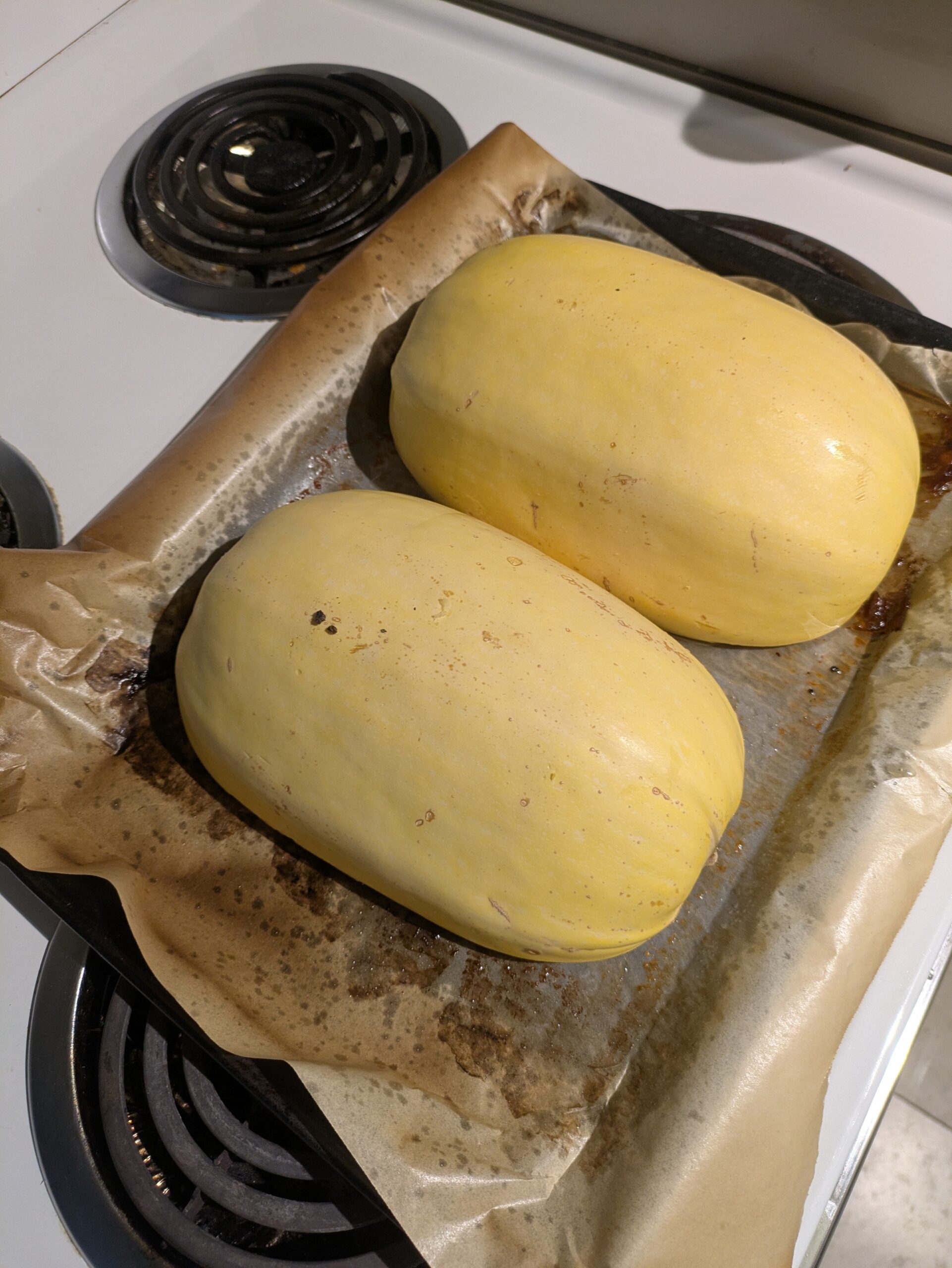 For this recipe you will need a very sharp knife to slice the spaghetti squash I suggest a chefs knife mine is 10 inches but you may prefer a longer of shorter one, or a a different knife entirely such as a cleaver all choices are valid just make sure it sharp, sharp knives prevent accidents and save fingers. In the fall I cook a lot of gourds so I usually have a sharp knife on hand. If you do not, consider sharpening your knife before slicing the squash, it will make your life much easier I promise.