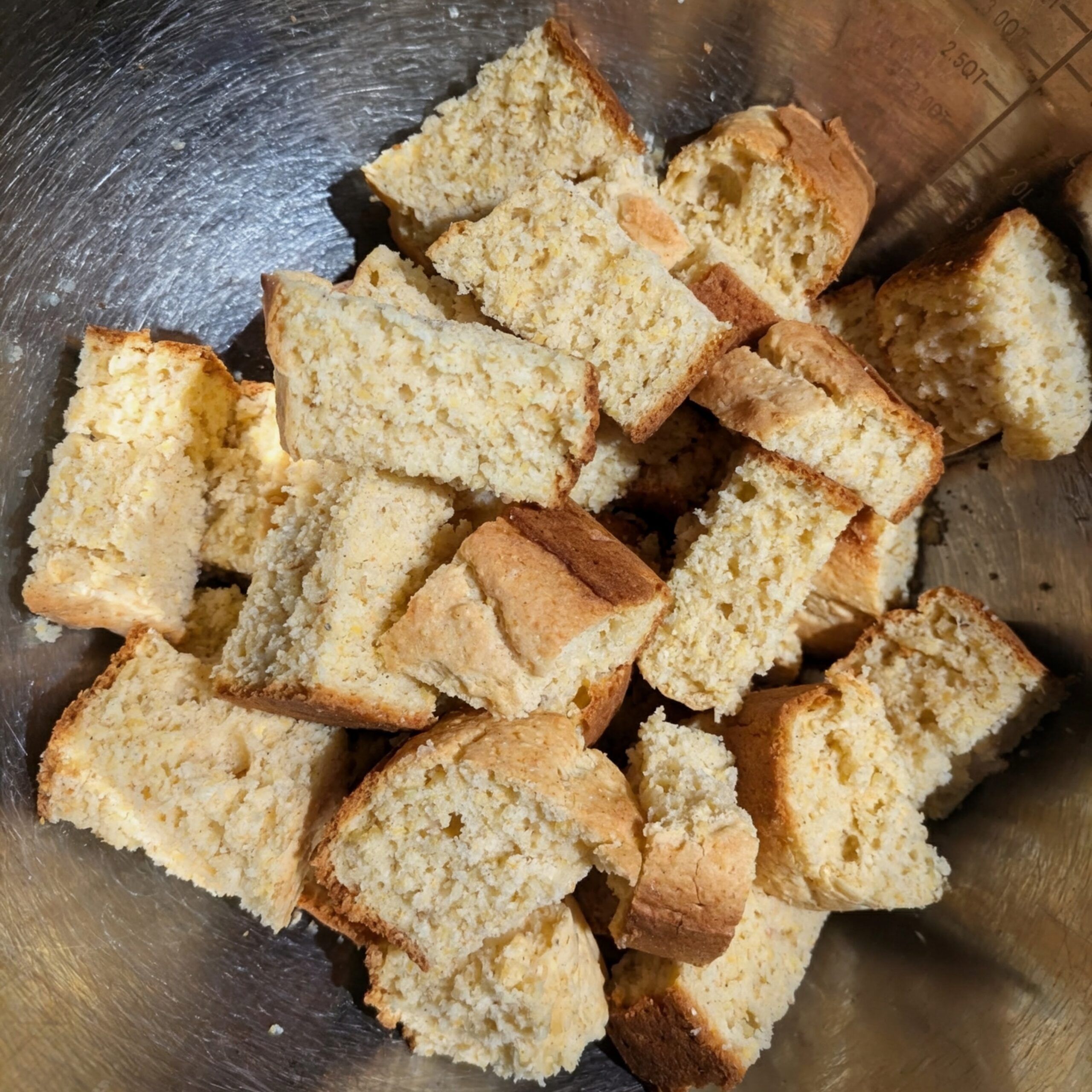 Cube the cornbread.
