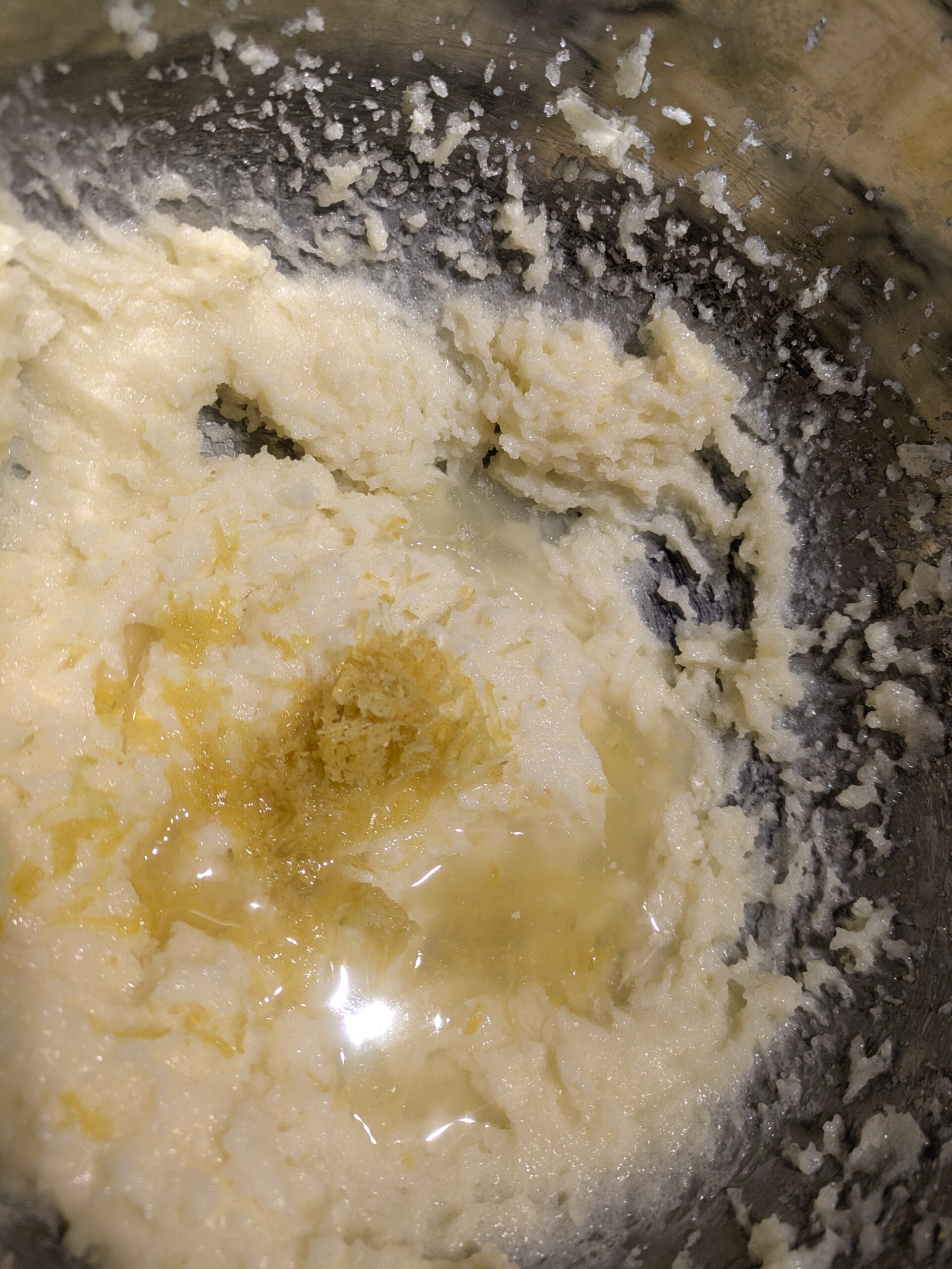 Add egg, lemon juice and zest.