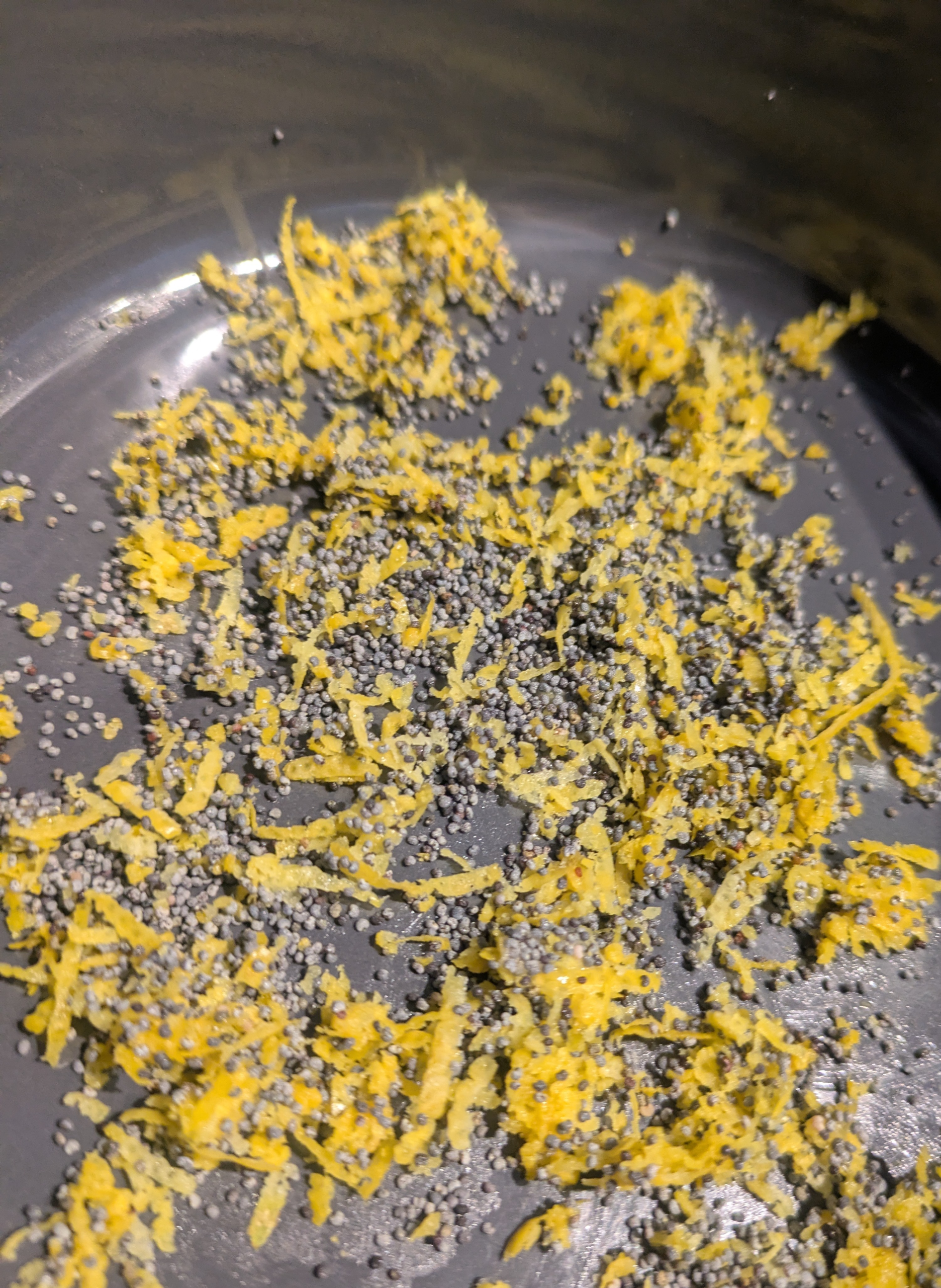 In a small bowl mix together additional poppy seeds and lemon zest.